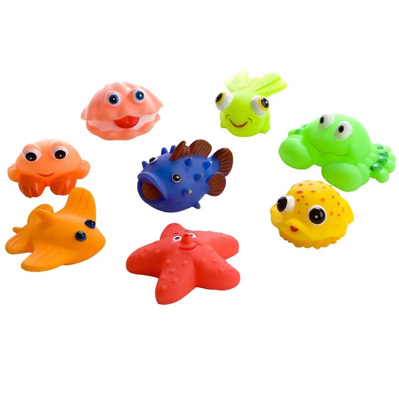 Men det finns faktiskt fler djur än bara ankor att välja på för ditt barn när det är dags att köpa leksaker i form av djur till badkaret. Många av de badleksakerna är i form av något slags blötdjur. Från märket Rätt start kan man köpa ett tolvdelat set med olika former av undervattensdjur för barnet att roa sig med under tiden som han eller hon badar. De är i olika färger och kommer underhålla ditt barn länge. De är i form av fiskar, grodor, bläckfiskar och valar för att nämna några. Eller varför inte köpa ett set med koralldjur till ditt barn, de har glada och härliga färger som gör att barnet kommer att vara sysselsatt en bra stund. De är formade som bland annat sjöstjärnor och krabba.