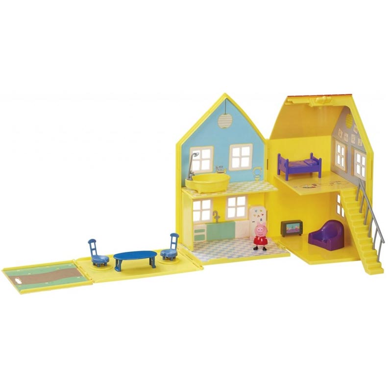Greta Gris deluxe-hus är precis som Gretas hus i tv-serien utrustat med sovrum, kök, badrum och tv-rum. Det här stora och roliga dockhuset är i två plan, med en tillhörande trappa till övervåningen och små fina möbler som hör till. En Greta Gris-figur följer också med, som naturligtvis kan kompletteras med att köpa övriga familjen Gris och alla Gretas vänner separat. Greta Gris deluxe-hus passar perfekt för barn som vill återskapa Gretas härliga äventyr från serien och böckerna, eller som vill hitta på egna spännande äventyr åt Greta, Georg och alla de andra. Huset kan öppnas upp vid lek och fällas ihop som en smart förvaring av alla figurer och tillbehör när det inte används eller ska flyttas.
