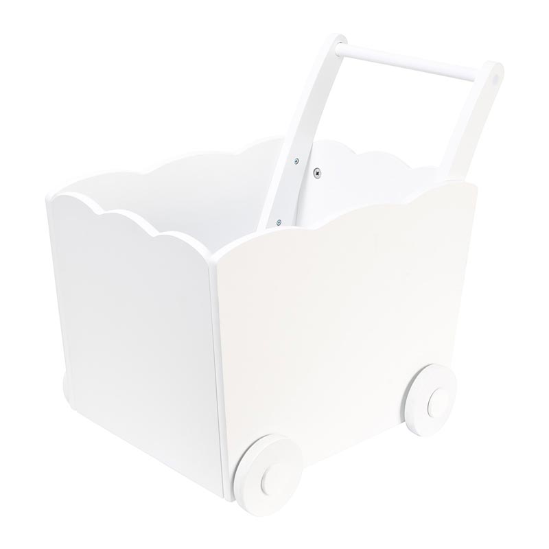 Den här vagnen från Jox är lika dekorativ när den står stilla i barnrummet, som den är praktisk som transportmedel för dockorna och gosedjuren. Vagnen är minimalistisk i sin utformning, och passar därför in i de flesta miljöer. Den rymmer dessutom en mängd leksaker, då förvaringsutrymmet är 41 cm långt och 31 cm i bredd och höjd. Med hjälp av handtaget kan barnen köra runt med leksakerna från rum till rum, och du som förälder smidigt stuva undan vagnen när ni behöver mer plats. Vagnen består av lackerade MDF-skivor, som enkelt rengörs med hjälp av en våt trasa.