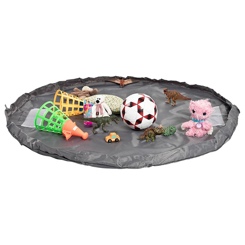 Den här smarta mattan från STOY fungerar både som förvaring och som skyddande underlag för golvet när barnen leker på den. Mattan är gjord i polyester, vilket gör den slitstark och enkel att rengöra. När barnen lekt färdigt drar du enkelt ihop resårbandet och samlar mattan till en förvaringssäck, som lätt stuvas undan. Nästa gång barnen vill komma åt leksakerna lossar du på resårbandet och så finns alla leksaker redan på plats. Förvaringsmattan är 152 cm i diameter, CE-certifierad och passar barn som är tre år eller äldre.